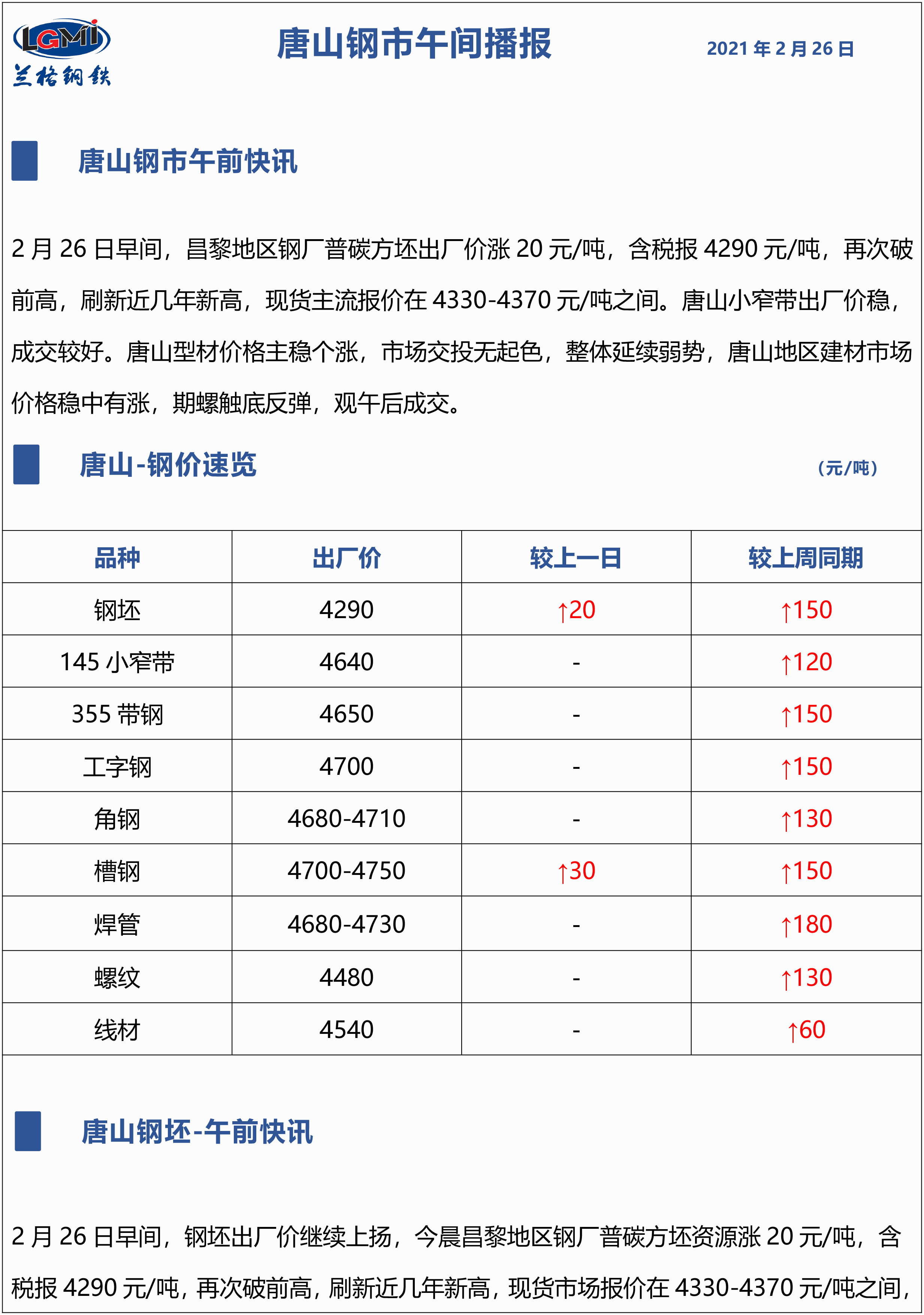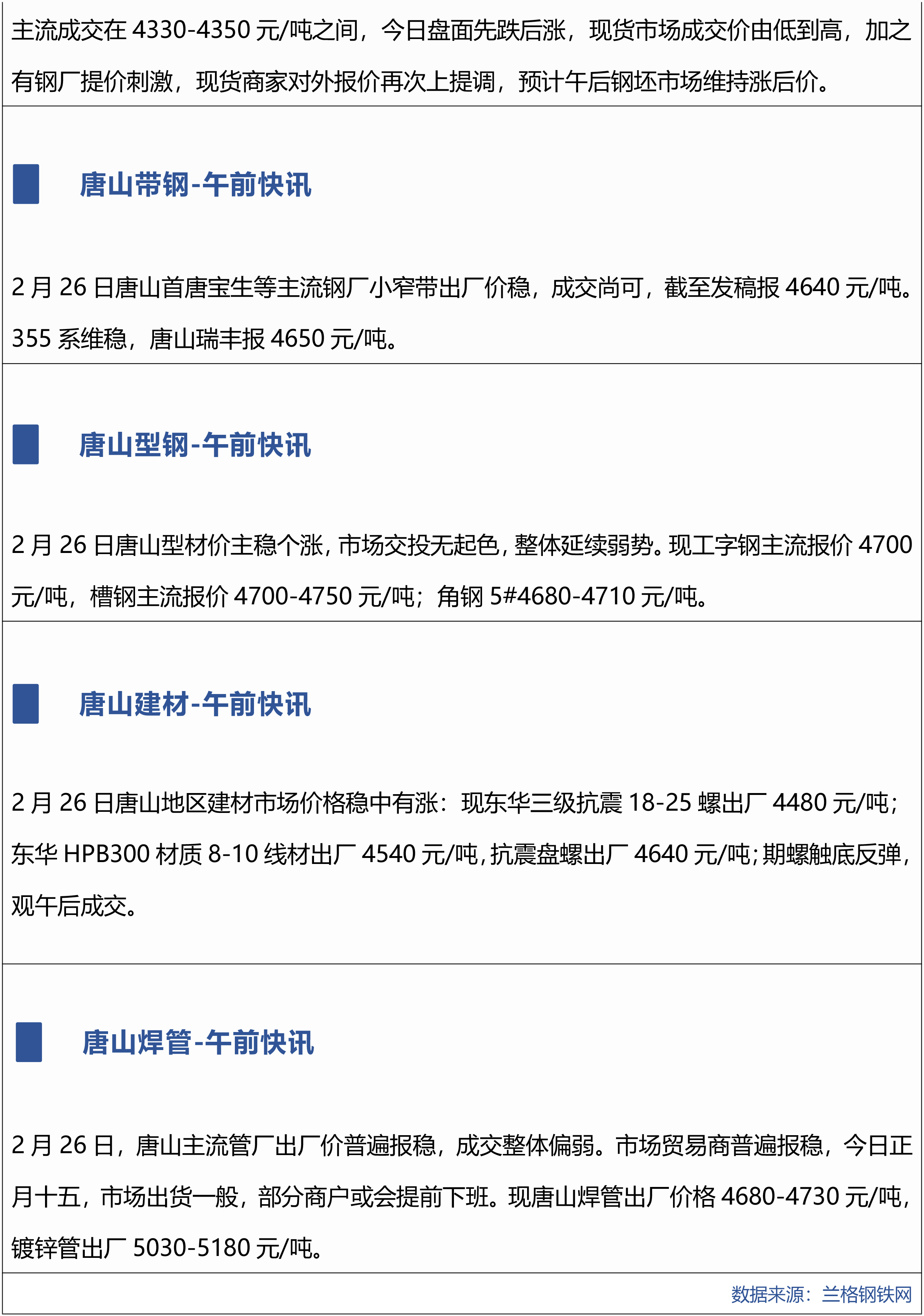 原标题:2月26日兰格唐山钢市午间播报