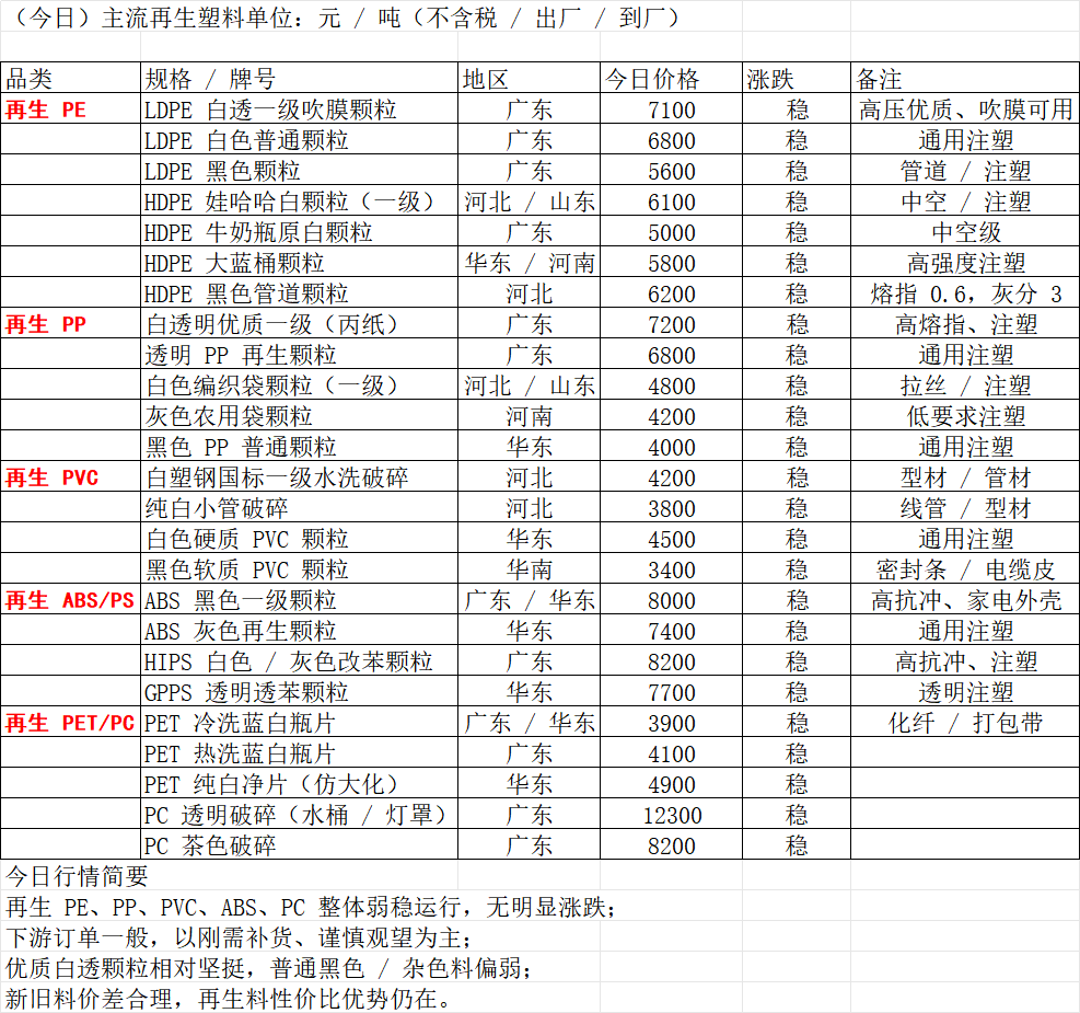2026年4月13 CRA再生料市场报价