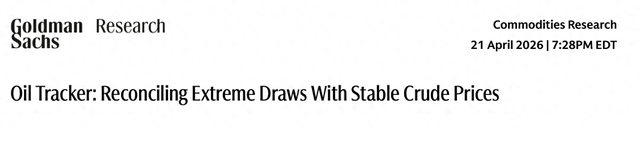 高盛在最新发布的报告中指出,这种“库存极端紧张但油价稳定”的现象并非市场失灵,而是多重短期因素叠加下的阶段性结果,而真正的冲击可能尚未完全反映在价格之中。