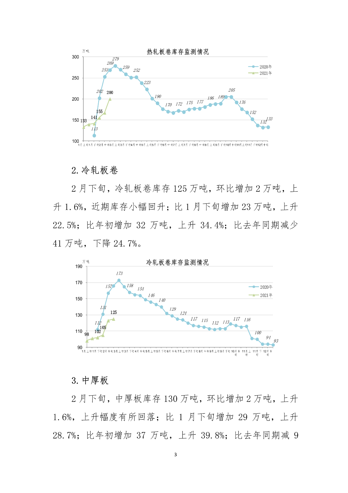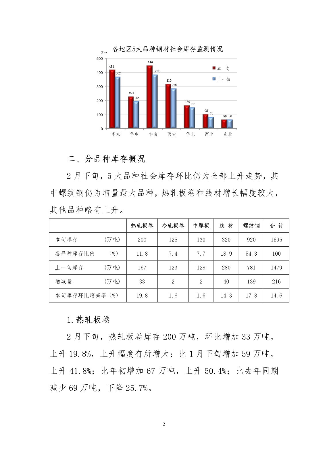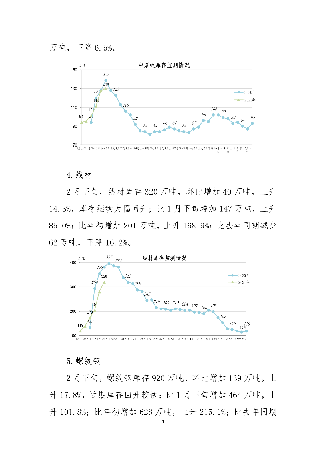 中钢协数据显示,2月下旬,20个城市5大品种钢材社会库存1695万吨,环比增加216万吨,上升14.6%,近期库存回升速度较快,比1月下旬增加722万吨,上升74.2%;比年初增加965万吨,上升132.2%;比去年同期减少210万吨,下降11.0%。