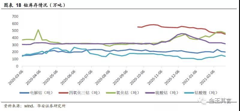 供给端:钴矿原产地以及原料中转地主要集中在南非,南非疫情扰动影响依旧存在。伴随2021年上半年进入冬季,叠加疫苗接种进展缓慢,钴原料供给紧张或将继续刺激钴价上涨。需求端:1)海国内电钴企业采购量与正常采购水平相比整体偏弱,而海外对金属钴以及合金类产品订单数量逐渐增加,预计欧美高温合金生产活动或已逐渐恢复正常。2)除了电钴外,四氧化三钴的需求较强,2020年全年需求至少比2019年增加5000吨。库存方面,无锡盘钴库存水平较高,但是受到以下三方面的因素影响,未来几个月去库存或成为大概率事件:1)上游冶炼厂出现减停产金属钴的情况;2)部分生产中的金属钴或将用于国储交储;3)进口钴向国内市场投放数量有限。