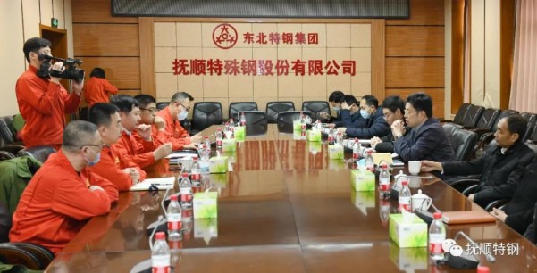 3月4日上午,中央财经办经济二局副局长祝丹涛(主持工作)、国务院国资委企业改革局副局长唐祖君率中央财经办调研组,在辽宁省国资委主任王永威,抚顺市委副书记于万军、副市长王金华等省、市相关领导陪同下来到抚顺特钢进行实地调研,了解企业重整以来的生产经营情况,帮助企业协调解决实际问题。东北特钢集团董事长龚盛,东北特钢集团副董事长、抚顺特钢董事长季永新及抚顺特钢领导孙立国、祁勇、鄂成松等热情接待了调研组一行。