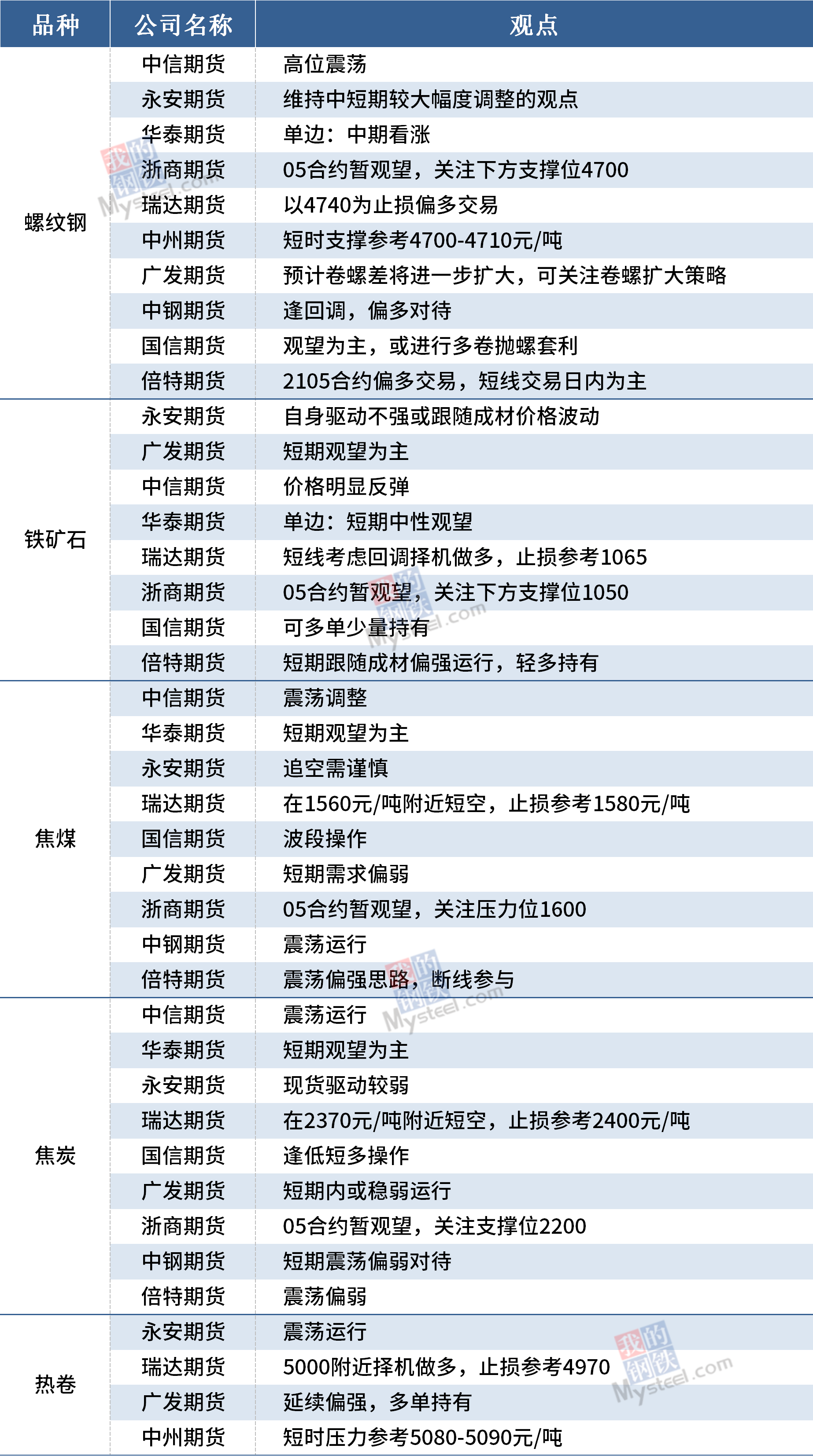 3月12日黑色期货机构观点汇总