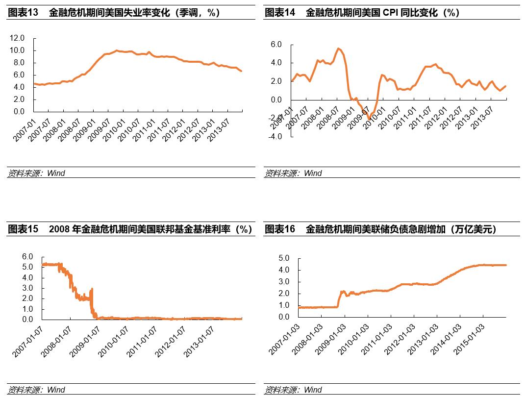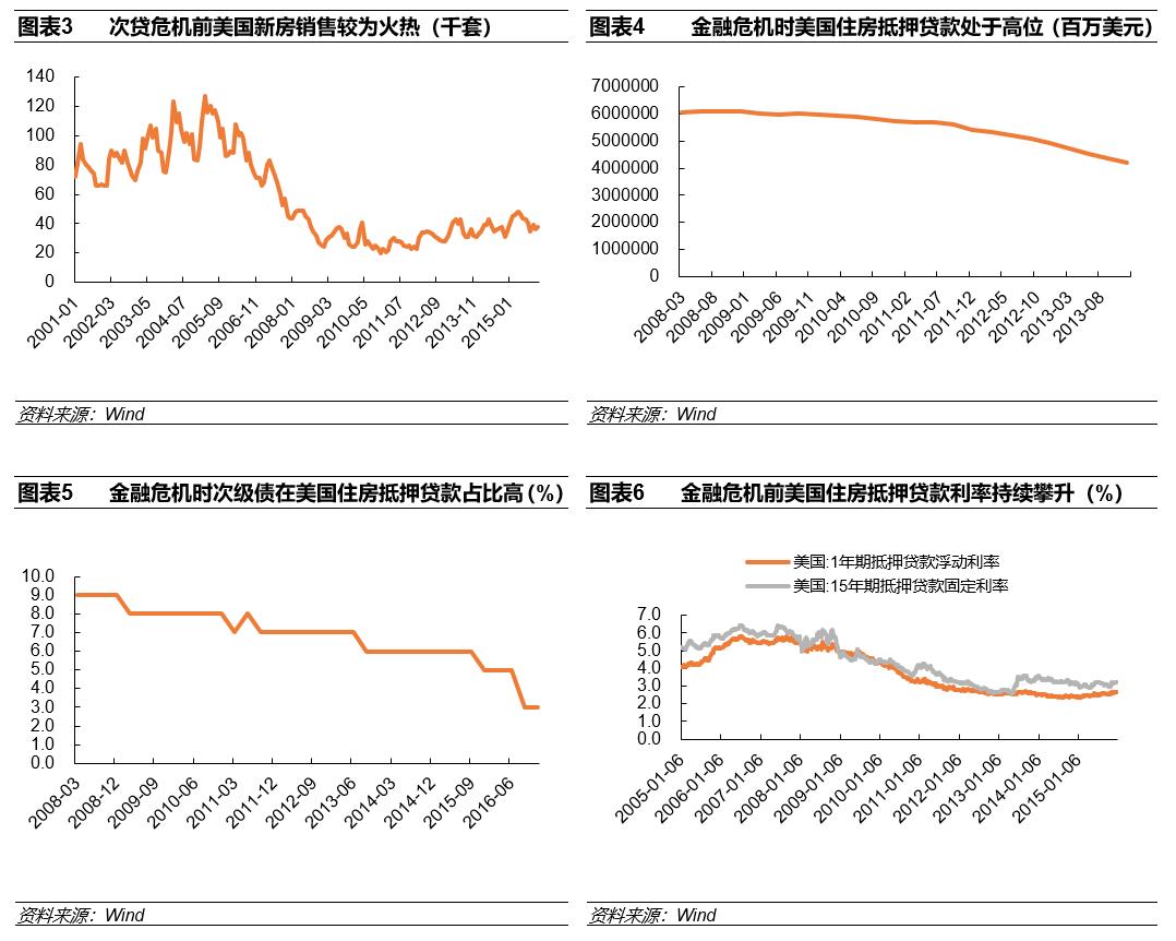 2001~2003年为了应对互联网泡沫破裂,美联储连续降息13次,使美国处于低利率环境,住房市场高度繁荣。2014年后随着美国经济复苏,通胀压力增加,美联储在2004~2007年多次加息,将利率抬升到约5%水平,从而导致了前期住房次级债大量违约,引发全球性金融危机。