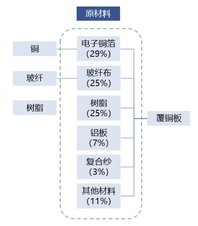 覆铜板原料主要由铜、玻纤、树脂构成。