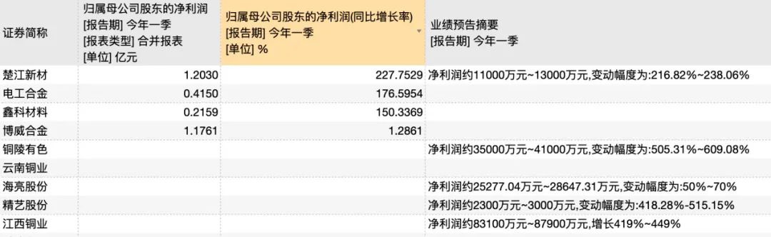 受益于一季度铜价高企,铜业股一季度业绩几乎全线暴增。