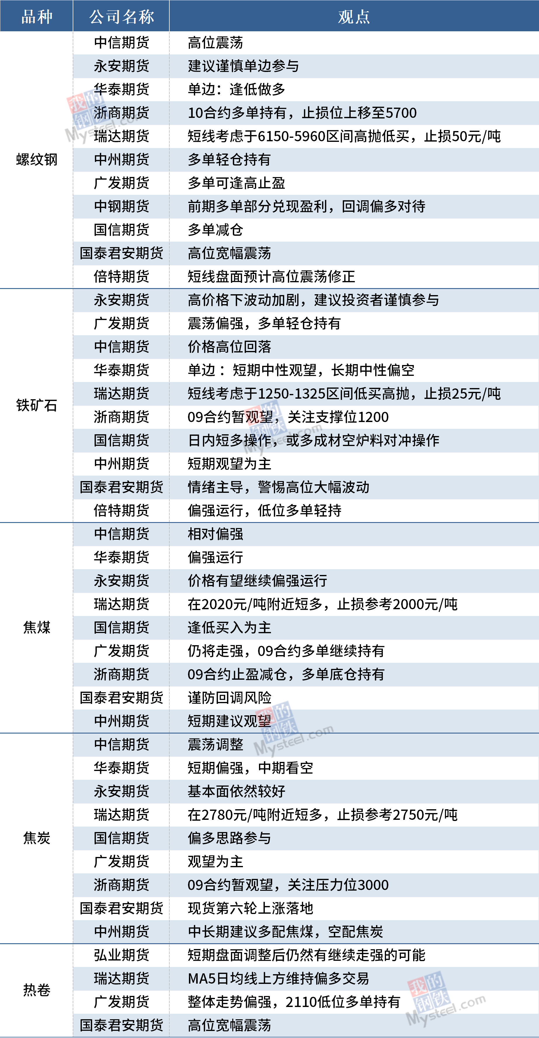 5月12日黑色期货机构观点汇总