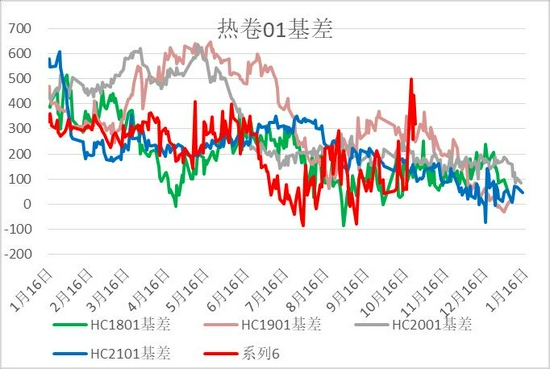 10月螺纹基差高位震荡:旺季需求不及预期但仍有刚需支撑,现货价格较为坚挺,期货走势冲高回落,10月末更是大幅下跌,基差持续维持高位。热卷基差走势相似。01成材受深贴水保护单边下行较难,预计未来一两个月期现价格双向回归修复基差。跨品种仍维持近强远弱格局。