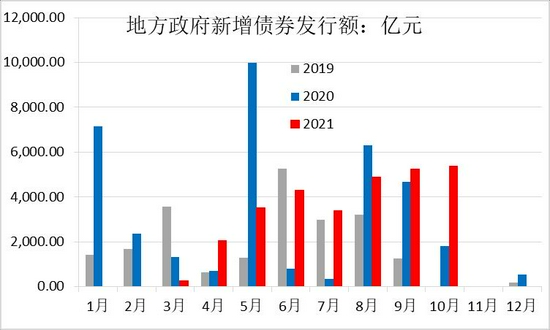 1-9月基建投资增速1.5%,比1-8月回落1.4个百分点,两年平均增长0.4%,增速回落主要是受去年基数较大拖累。单月数据来看,9月基建增速-5%,降幅较8月收窄2个百分点,8月开始专项债发行有所加快。10月全国共发行新增专项债券5371.66亿元,再创本年度单月发行规模新高。近日财政部提出要求,2021年新增专项债券额度尽量在11月底前发行完毕。照此计算,11月新增专项债发行规模约9000亿元,这将是自去年5月以来单月发行规模最大的月份。