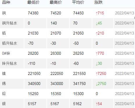 4月13日上海有色金属交易市场价