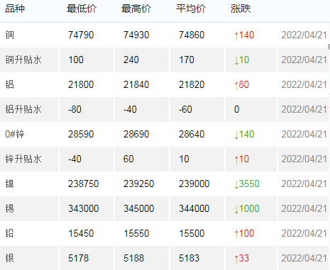 4月21日上海有色金属交易市场价