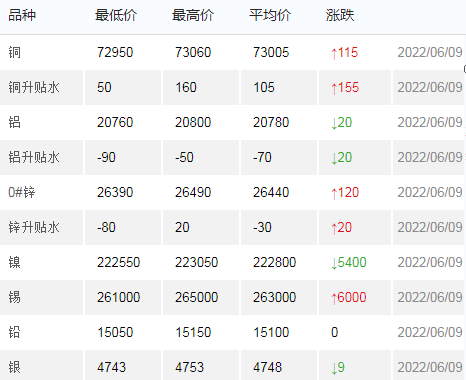 6月9日上海有色金属交易市场价
