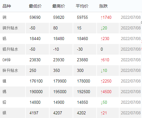 7月8日上海有色金属交易市场价