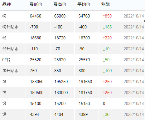 10月14日上海有色金属交易市场价