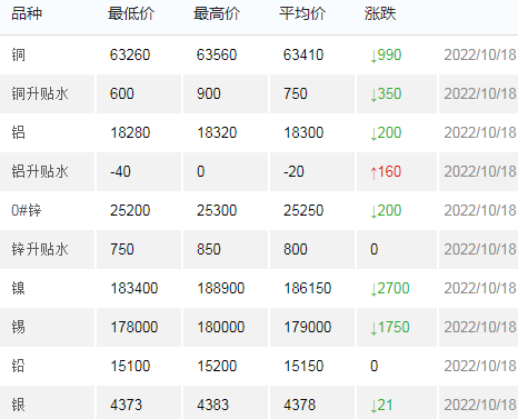 10月18日上海有色金属交易市场价