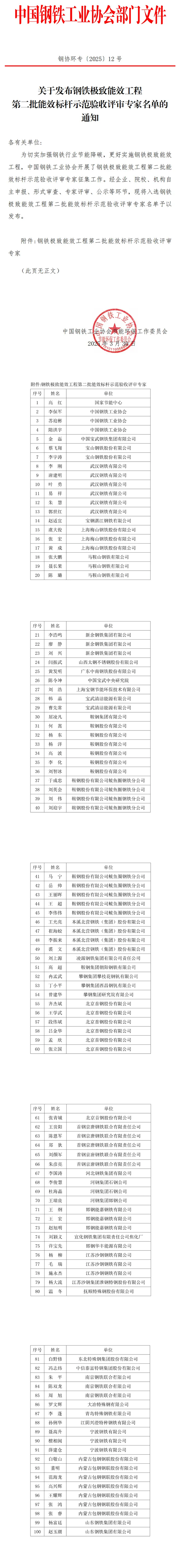 中钢协发布钢铁极致能效工程第二批能效标杆示范验收评审专家名单。