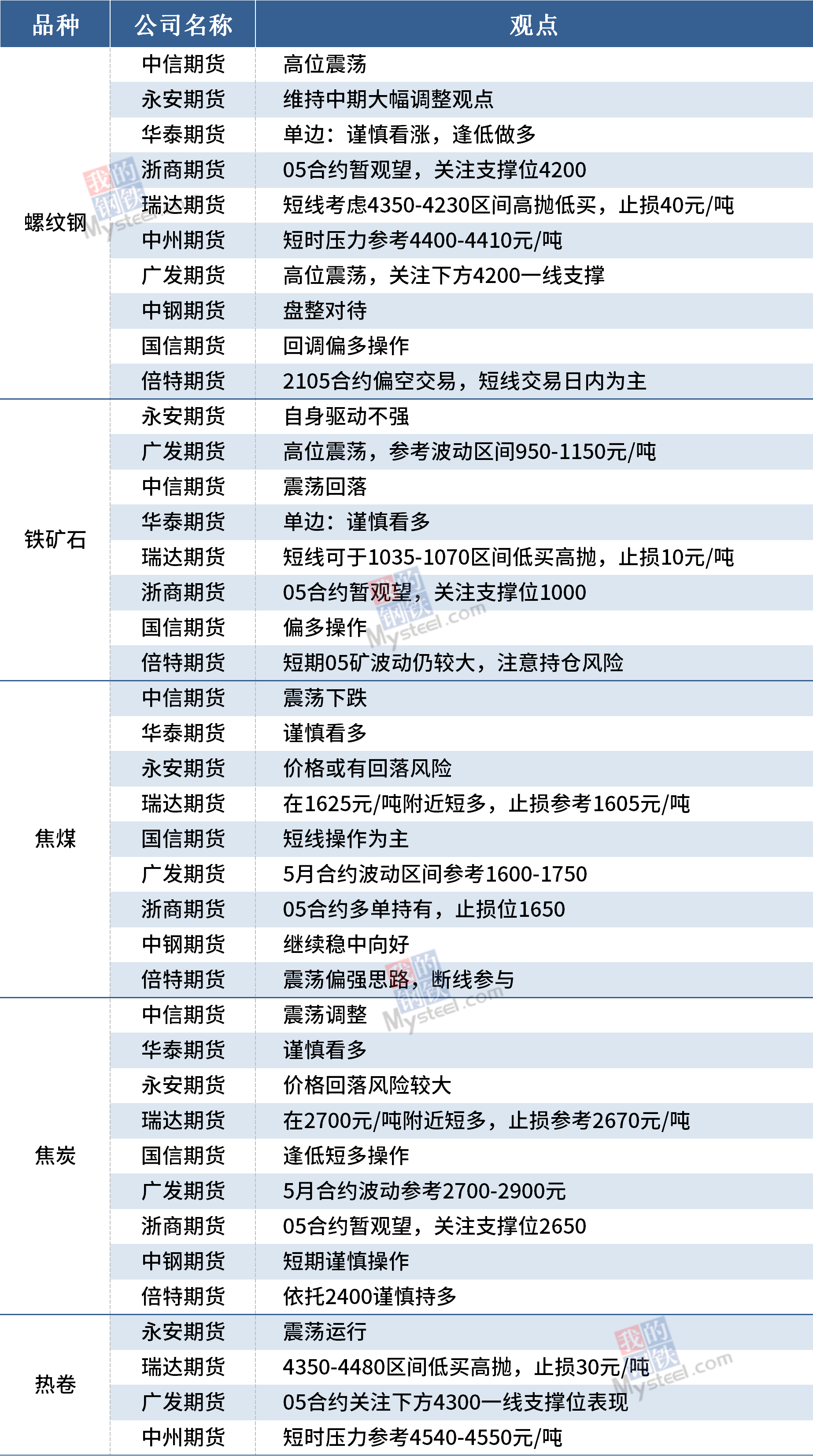 1月21日黑色期货机构观点汇总
