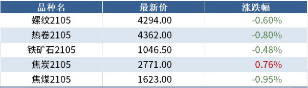◎螺纹钢跌0.60%、热卷(4330, -67.00, -1.52%)跌0.80%