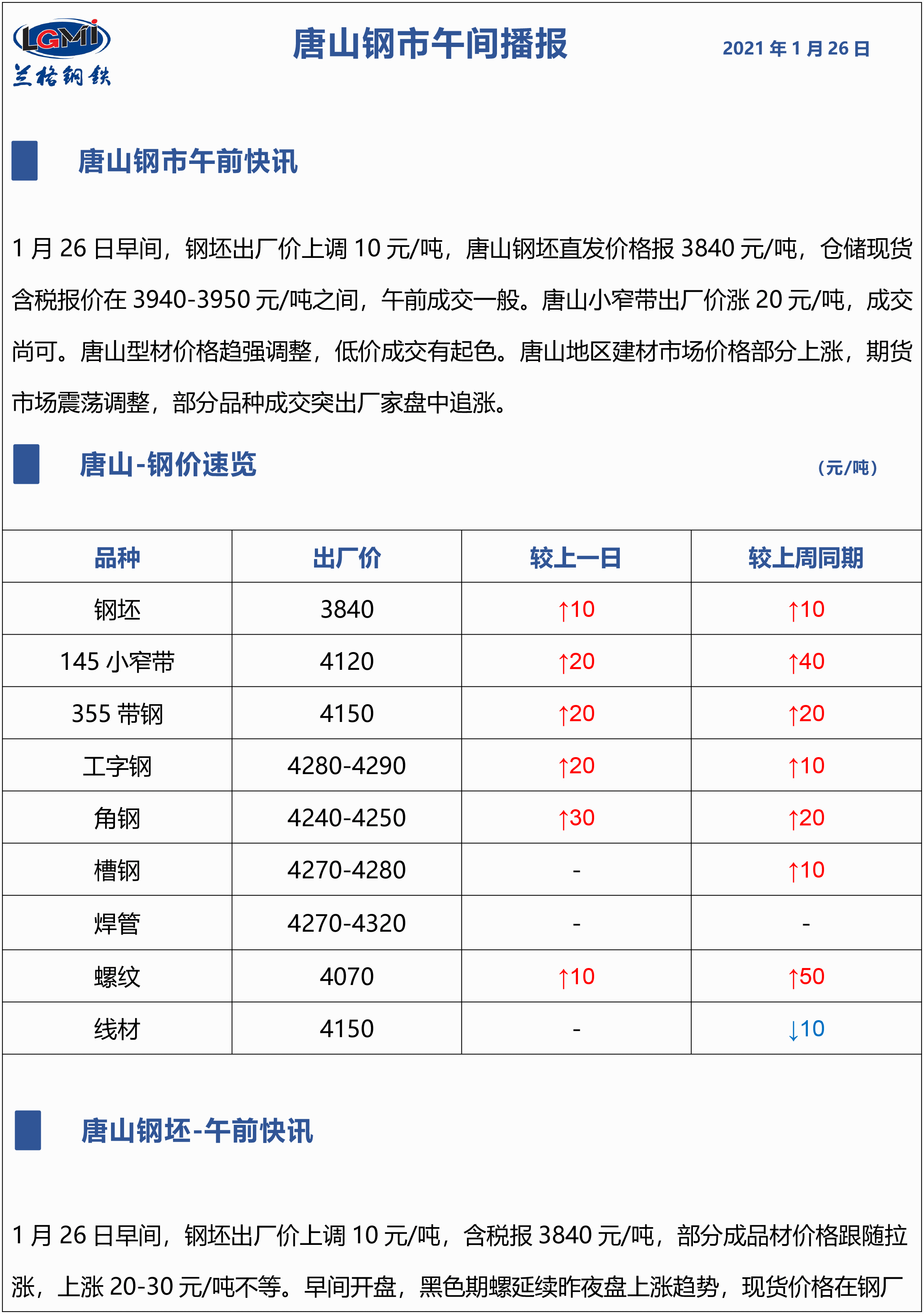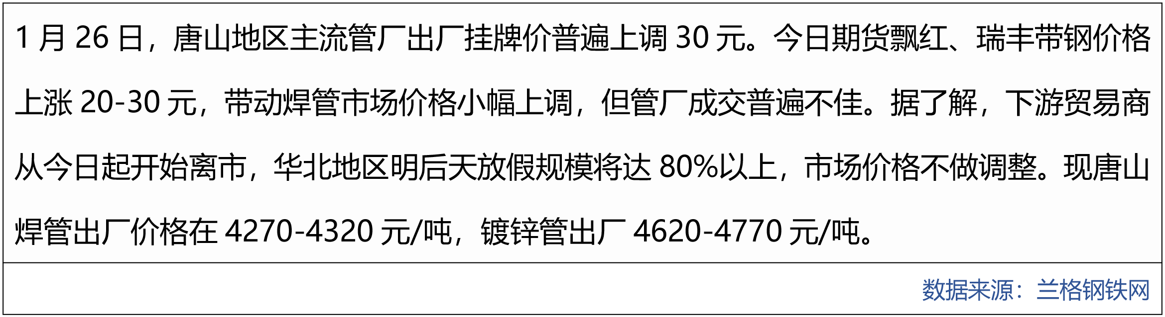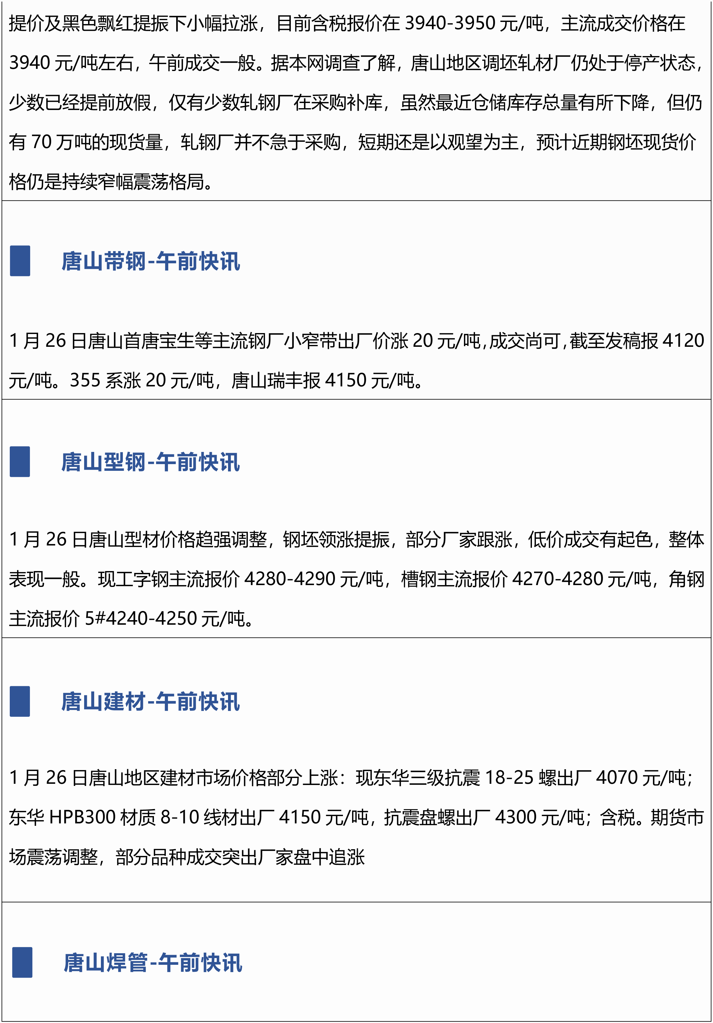 原标题:1月26日兰格唐山钢市午间播报