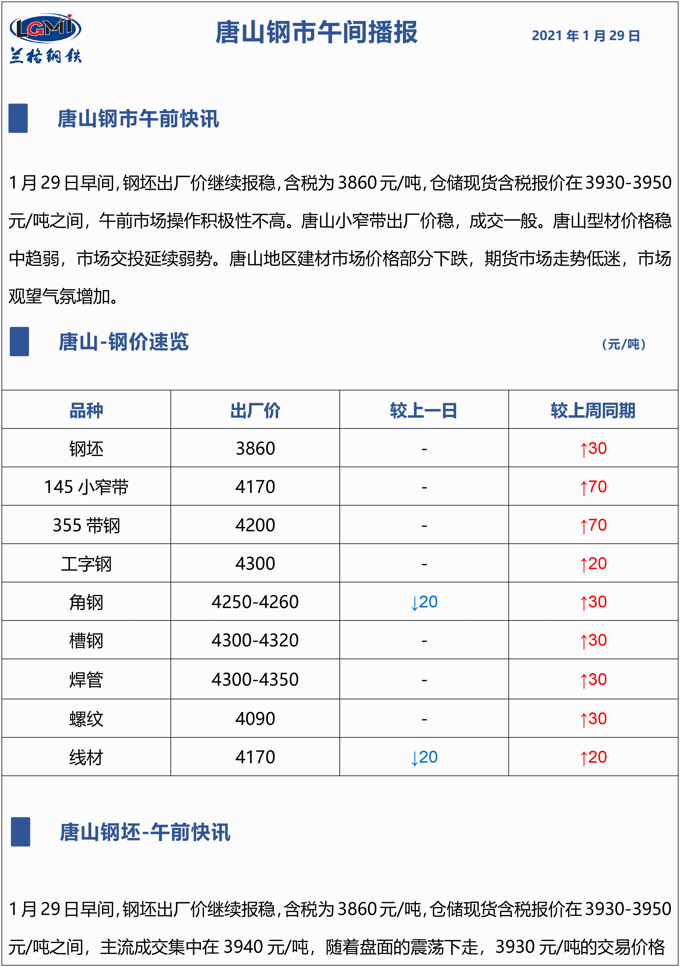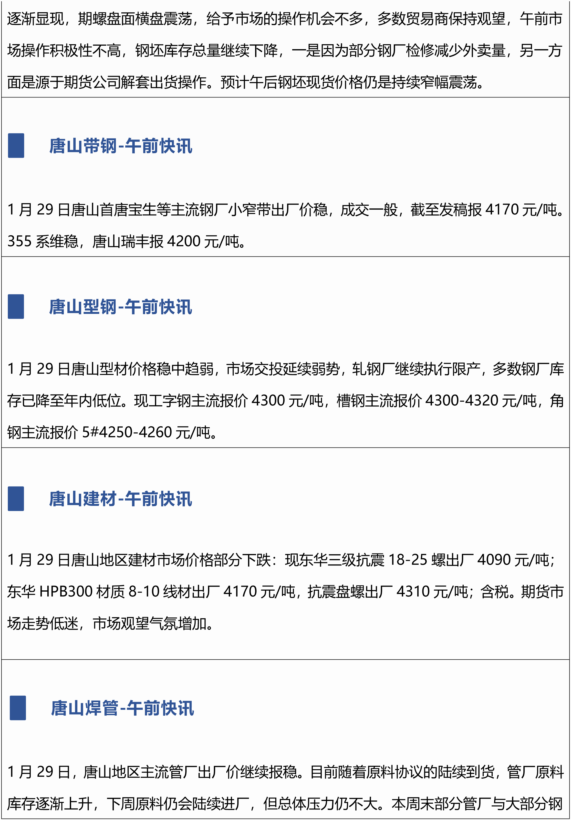 原标题:1月29日兰格唐山钢市午间播报