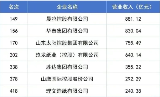 近日,中国企业联合会、中国企业家协会发布2025中国制造业企业500强名单,这是中国企联连续第21次向社会发布该项榜单。多家造纸企业登上榜单,其中包括玖龙纸业(控股)有限公司、理文造纸有限公司、山鹰国际控股股份公司、华泰集团有限公司、晨鸣控股有限公司、山东太阳控股集团有限公司、胜达集团有限公司等,祝贺以上上榜企业!
