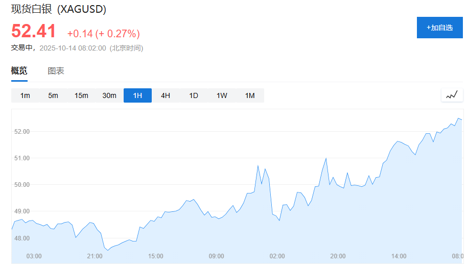 据彭博数据,伦敦现货白银价格一度上涨0.4%,触及每盎司52.5868美元的历史新高。这一价格超越了1980年1月在芝加哥期货交易所(现已不存在的合约)创下的52.50美元高点,当时德州亿万富翁亨特兄弟试图通过囤积白银来垄断市场。