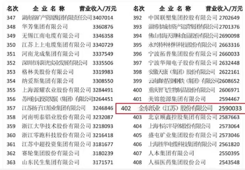 镇江有3家企业成功入选。其中,位于镇江经开区的金东纸业(江苏)股份有限公司凭借259亿元的营业收入,位列榜单第402位。