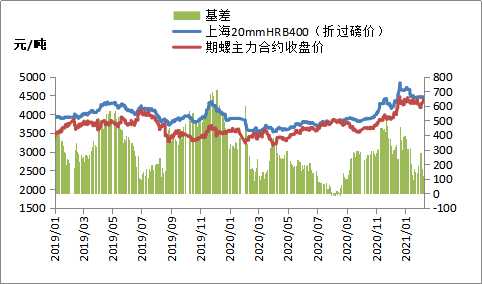 截至发稿,期螺主力合约报4393元/吨,较上海市场20mm三级螺纹钢(4393, 73.00, 1.69%)(折过磅价)贴水63元/吨。