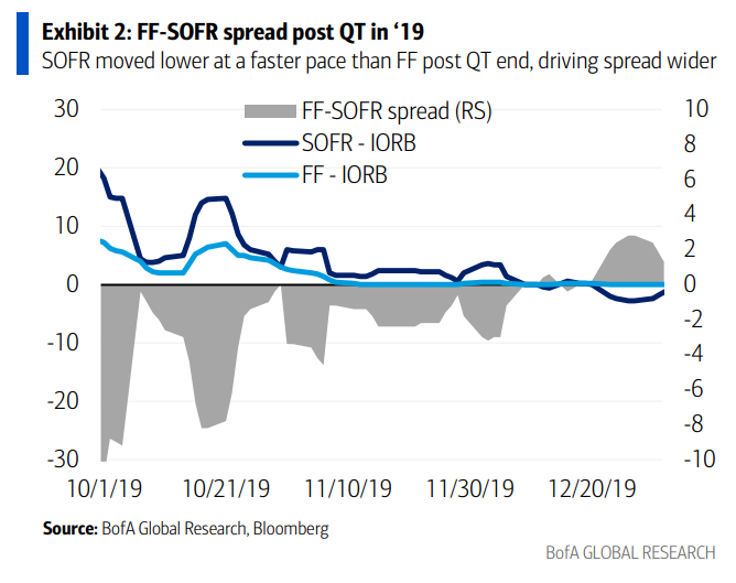 美银表示,相比于单纯为了压低长期利率或刺激经济的QE,RMP更像是一种对银行体系“管道”的维护。然而,对于短期融资市场而言,其实质影响就是直接的流动性注入。美银认为,通过RMP注入的现金将迅速压低SOFR,但联邦基金利率的反应会相对滞后,这种“时间差”创造了显著的套利空间。