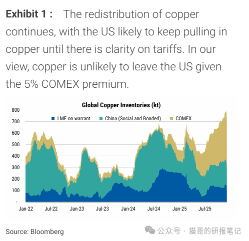全球都怕关税落地,所有只能抢着把铜提前运进美国,现在美国COMEX铜价已经比伦敦LME高出5%,2027年的合约价差更是逼近15%。