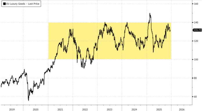 过去四年多时间里,全球消费者信心不足持续笼罩市场,在此期间欧洲奢侈品股票陷入区间震荡,未能呈现类似科技股的上升趋势。该机构认为,2026年可能出现突破。