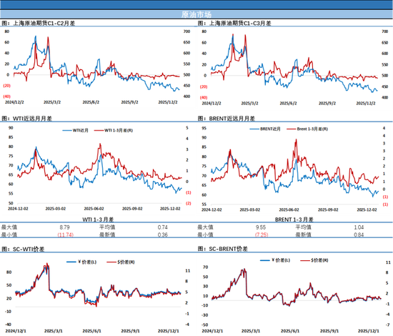 周二油价日内冲高回落,微幅收跌,亚欧时段地缘层面俄乌、中东及南美委内瑞拉持续不断的给市场带来扰动让油价维持阻力区域下方震荡反弹,乌克兰袭击俄罗斯能源设施次数创下月度新高,根据三方机构统计12月至少发生了24起针对俄罗斯炼油厂、海上油轮和其他海上设施以及主要管道基础设施的袭击事件。南美委内瑞拉被封锁下原油(607, -8.60, -1.40%)出口大幅下降,但夜盘油价又从高位回落的表现显示目前地缘因素还是难以改变原油市场供应过剩的局面。