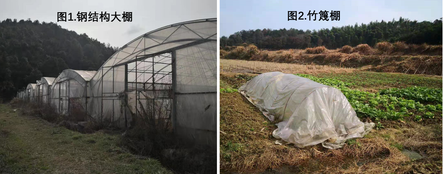 一大新“钢需”是农田里出现了大片的钢结构蔬菜大棚,如图1和所示;在我们家乡的农村,传统的村民种菜都基本是为了满足自己的消费,所以几乎不用蔬菜大棚,即使很少一部分村民建的小型简陋蔬菜棚也都是就地取材的竹篾所制作,如图2所示。