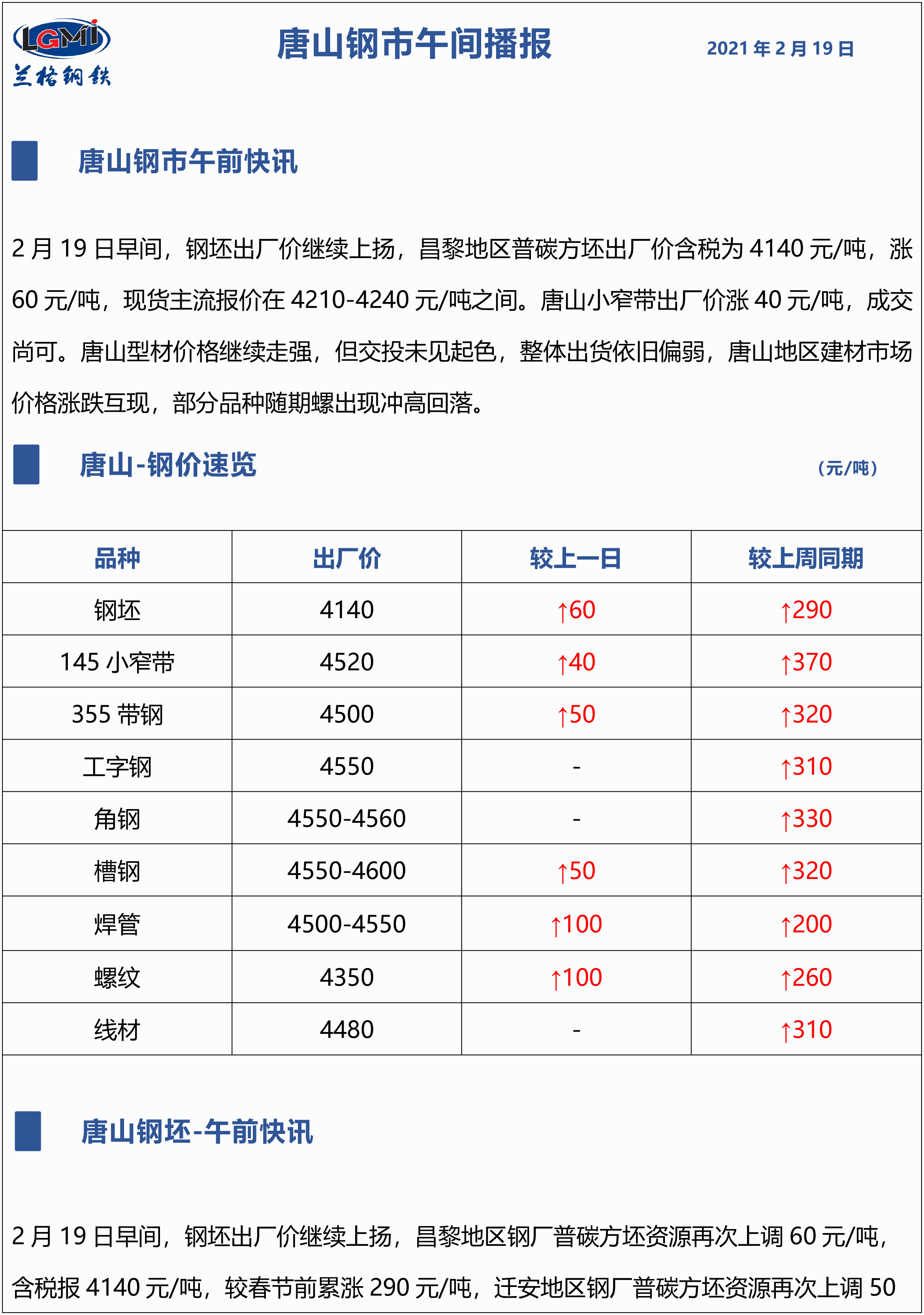 原标题:2月19日兰格唐山钢市午间播报