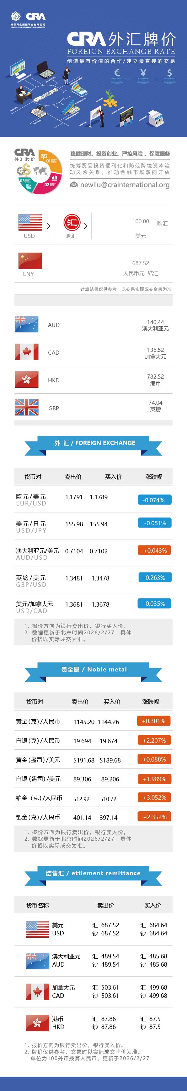 2月27日CRA贵金属及外汇市场价