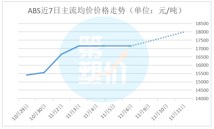 ABS终端需求偏强,大型下游工厂及贸易商的持续购买力驱动市场继续向好。特别是经过十一长假刚过后的那波抢货高潮后,挺价动能较强。但近日来看,各方参与力度减弱,中小下游观望。预计,短期ABS市场或高位僵持整理,部分当前部分价格接近历史高点,价高量缩或增加后市风险。