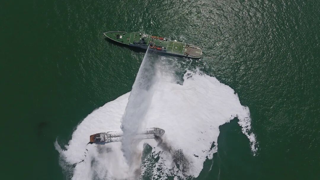 上海海事部门提供的视频显示,两船碰撞后,油船发生了火灾,燃起浓烟。救援船只在对其进行喷淋作业,救援直升机盘旋在涉事海域上空。