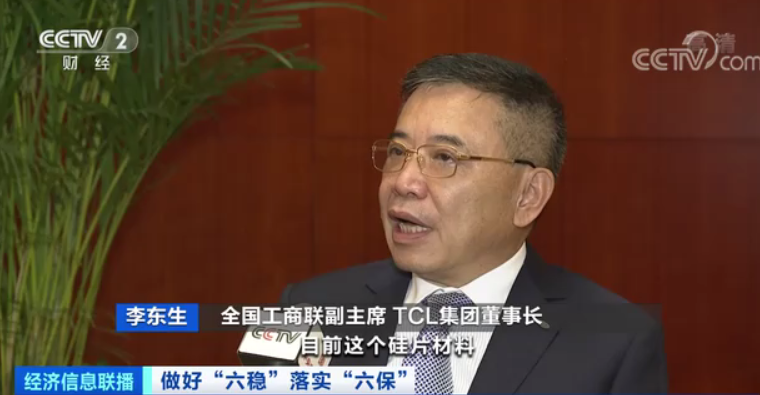 全国工商联副主席 TCL集团董事长 李东生:目前硅片材料大概90%需要进口,国内的配套还不到10%。未来这个业务如果发展起来,能够在半导体芯片的供应链上补上短板,助推中国半导体芯片产业的发展。