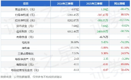 公司营业总收入1.28亿元,同比下降68.47%,归母净利润-597.47万元,同比上升88.92%。