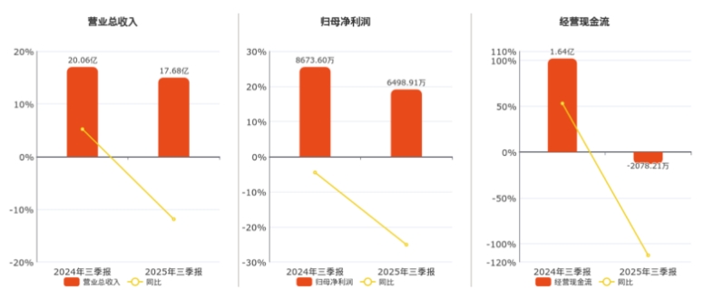 公司实现营业总收入7.96亿元,同比增长6.54%;归母净利润5486.64万元,同比增长3.25%。