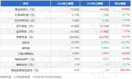 公司营业总收入90.63亿元,同比上升24.8%,归母净利润7.78亿元,同比下降4.77%。