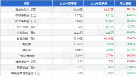 公司营业总收入64.57亿元,同比上升18.13%,归母净利润1.81亿元,同比下降44.66%。