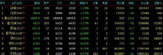 2025年11月6日,早盘开盘,国内期货主力合约涨多跌少,焦煤(1556-15.00-0.95%)焦炭(2232-47.00-2.06%)豆一(4521-21.00-0.46%)豆粕(311118.000.58%)、沪银、豆二(365614.000.38%)20号胶烧碱涨超1%。跌幅方面,沥青(3609-13.00-0.36%)、丙烯、集运欧线、聚丙烯、SC原油(607-8.60-1.40%)跌超1%。