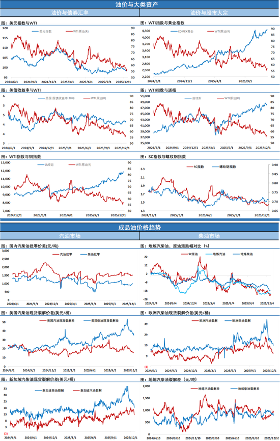 周一油价高开高走最终收出大阳线,早盘市场迅速计价周末地缘层面的持续扰动。美国周末连续扣押二艘运输委内瑞拉石油的油轮进一步增加了委内瑞拉石油出口中断风险。在俄乌和平谈判没有积极信息背景下俄乌继续相互攻击对方能源设施,尤其是乌克兰有针对性的袭击俄罗斯里海石油平台及影子油轮等,另外中东方面也传出以色列官员计划向特朗普通报可能对伊朗发动新一轮打击的计划的消息。下午市场又传出俄罗斯一中将在莫斯科汽车炸弹爆炸中死亡的消息,持续发酵的地缘风险不断给市场注入风险溢价。这样地缘炒作第四个交易日油价累积涨幅达到了3美元。